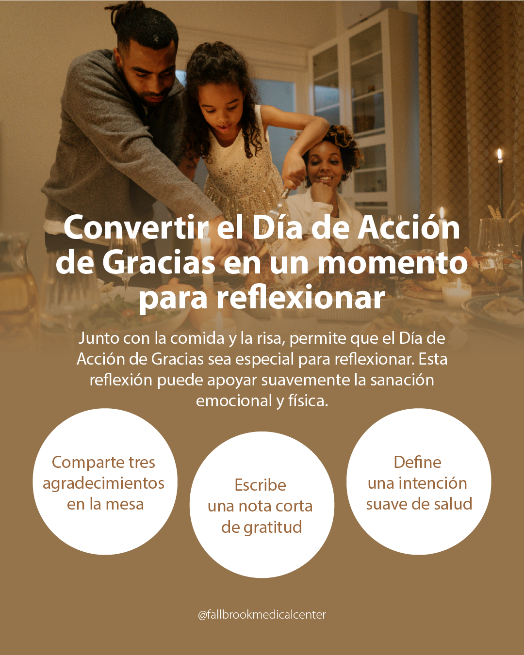 El Día de Acción de Gracias nos invita a bajar el ritmo y respirar. Ofrece un momento suave para reflexionar sobre nuestra salud y nuestras relaciones.